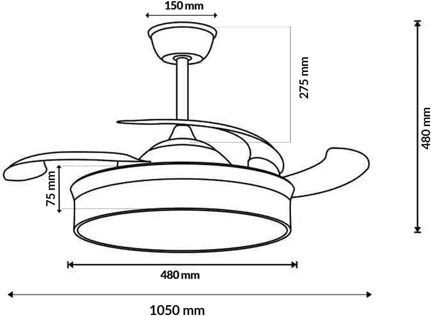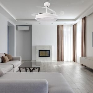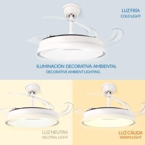 Features retractable blades that expand when in use and fold away when idle for a sleek look. The dual summer-winter function optimizes air circulation year-round, keeping spaces cool in hot weather and distributing warm air in colder months.